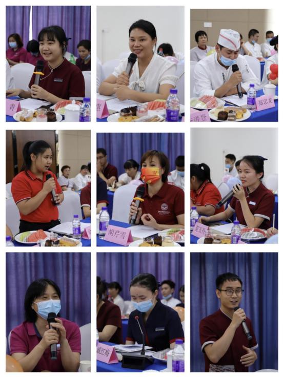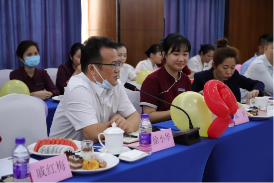 座谈会上,“五心”金牌员工戚红梅、莫玉丹、韩青、郑忠龙、郑艳、胡芹雪、金代秀、庞荣惠8人及其他一线员工在座谈会上敞开心扉,分享经典案例,畅谈工作当中遇到的疑难杂症、创意服务、温暖瞬间等,与公司高层面对面谈谈想法、发发牢骚、讲讲心里话,现场氛围欢乐、融洽。
