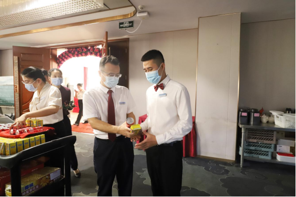 慰问时,董事长兼总经理徐凤莲对职工们工作期间坚守岗位、连续高强度工作的勤恳态度表示赞扬,并叮嘱大家要注意身体和补充体能,同时强调要确保工作安全,增强安全责任意识,为酒店安全生产保驾护航。