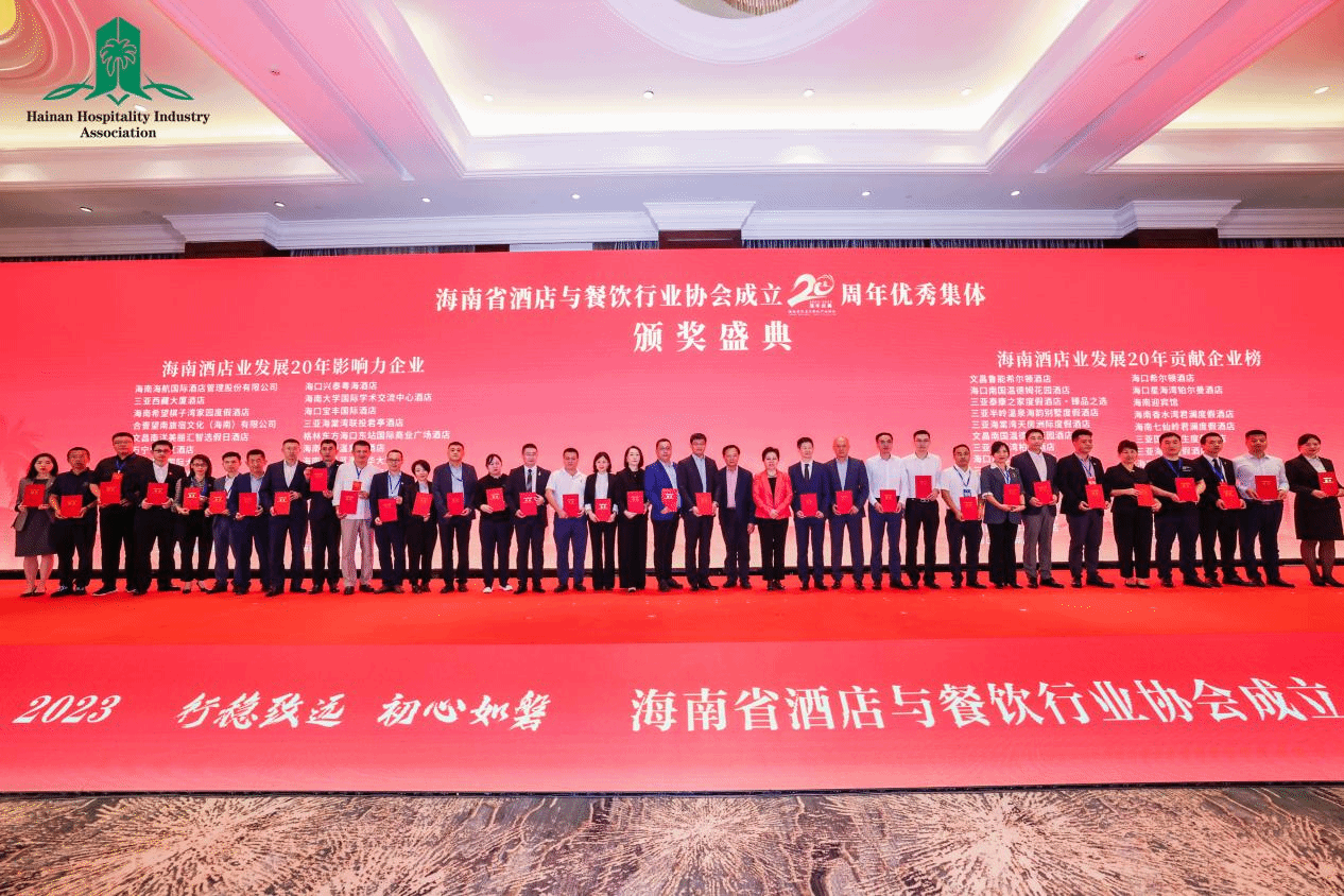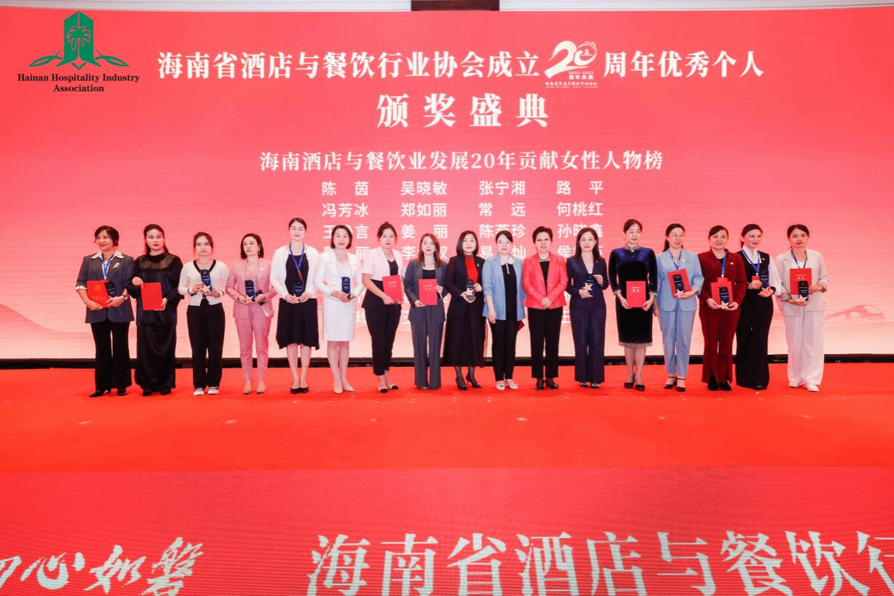 在本次大会上,yl6776永利集团,yl6809永利皇宫从众多企业中脱颖而出,荣获“海南酒店业发展20年影响力会议酒店荣誉”称号;公司董事长兼总经理徐凤莲被授予“海南省酒店业荣光二十载巾帼女杰”荣誉称号;公司餐饮部厨师长高日诚被授予“海南酒店与餐饮业发展20年优秀美食工匠”荣誉称号。