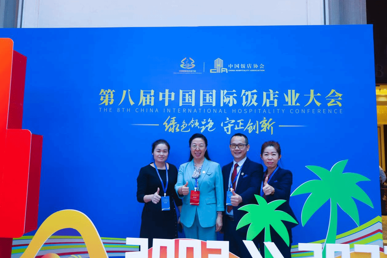 2023年11月29日,《第八届中国国际饭店业大会》《海南省酒店与餐饮行业协会第五次全省全员代表大会》在海南海口开幕。公司董事长兼总经理徐凤莲携公司管理团队出席大会活动。